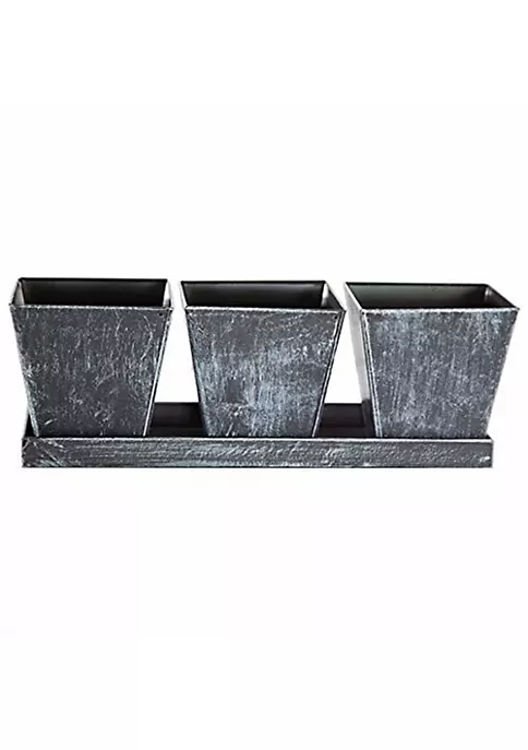 Gardener Select has created this set to have a rustic rusty look. The set includes three pots with holes in the base for drainage, and a coordinating tray. You can dress up any yard or garden space with this farmhouse inspired collection, when you add your favorite flowers or greens!