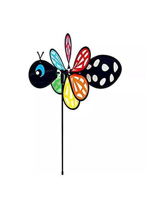 Made with durable fade resistant nylon fabric, this whimsical black bee yard spinner with multicolor wings is sure to delight in even the lightest breeze. It’s the perfect size for your garden, flower pots and planters. Pinwheel measures 11 inches wide by 16 inches high. Adorable on it’s own or create a eye catching “swarm of bees” with multiple spinners!