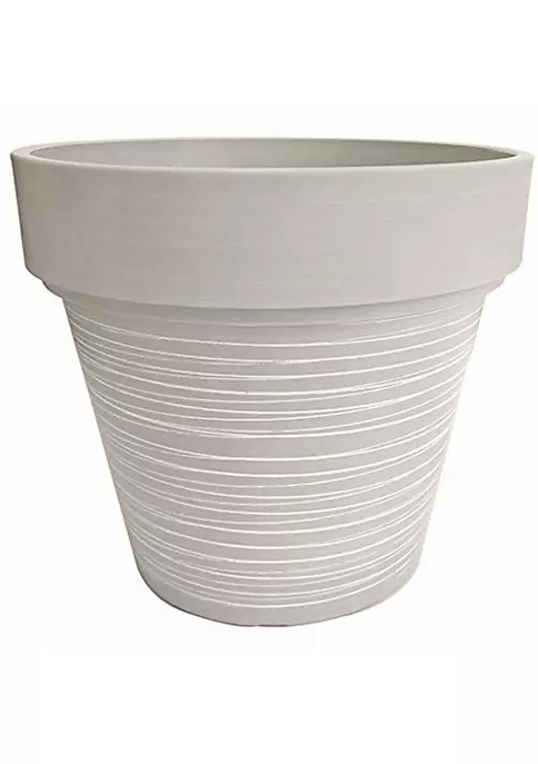 Add elegance and simplistic style to your front porch, deck or patio. Elegantly carved finish gives an upscale look and feel to this planter. The look is close to that of real ceramic pottery but features the lightweight durability of plastic. The lightweight material makes it easy to move around your outdoor area or to storage during the off-season. Made of a blend of stone powder, wood fiber and plastic, this planter is durable enough for use season after season. Frost safe and eco-friendly. The design is perfect to accent any plant or flower and looks great on it’s own, clustered with other planters in this line or to blend in with your existing decor!