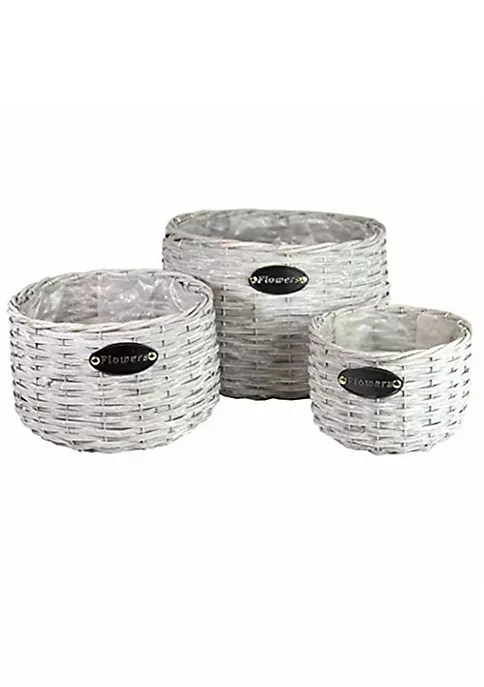 These simple, natural light grey woven baskets are a perfect compliment to nearly any decor. Add to any tabletop or floor in your home, office or wherever you choose. Set comes with three different sized baskets, so they are striking standing alone, but also very pleasing arranged in a cluster of 3 with varying plants in them. Three baskets means you get to display three of your favorite plants! They are adorned with a small metal plate with the word “Flowers” scrolled across them. But, that doesn’t mean you can only use these baskets for plants! These baskets are also great for storing many household or office items. You’ll find tons of ways to use these adorable wood woven baskets. Make great gifts too!