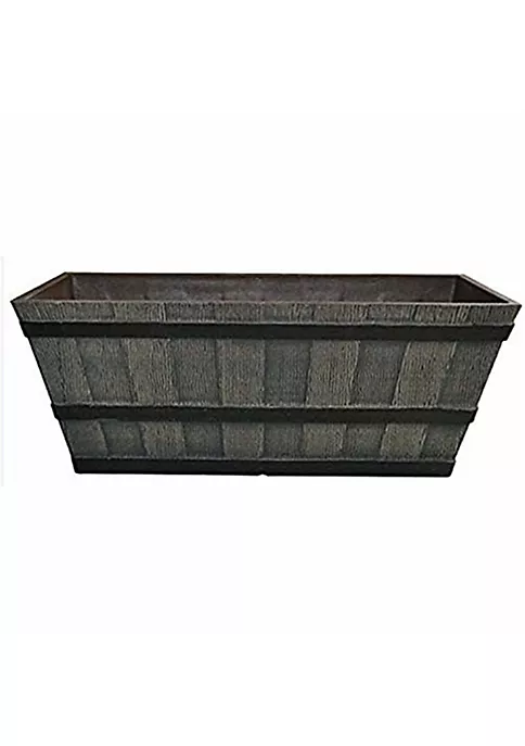 Add charm to your home with this rustic looking whiskey barrel trough planter! The classic piece has faux wood planks placed vertically and bound by dark speckled bands running horizontally, making it a vintage statement accent any plant or flower you put in it. It is made of durable, weather resistant resin material, so it is easy to move and will last for years to come. Showcase for your plants and flowers in this charming whiskey barrel planter. Certain to be an eye-catcher!