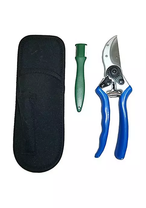 Keep your pruner working strong. This pruner set contains a 8.5 inch pruner with high carbon steel blades featuring a non-stick coating. Multi-sharpener blade is made with tungsten carbide. Also included is an easy-to-use sharpener and polyester pouch. The pouch features a metal belt clip, interior pocket for the pruner and exterior pocket for storing the multi-sharpener.