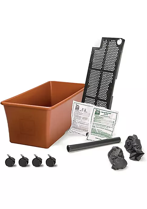 What’s included: 1 EarthBox Container, 1 Aeration Screen, 1 Water Fill Tube, 4 Casters, 2 Black & White Reversible Mulch Covers and Instruction Sheet & Planting Guide