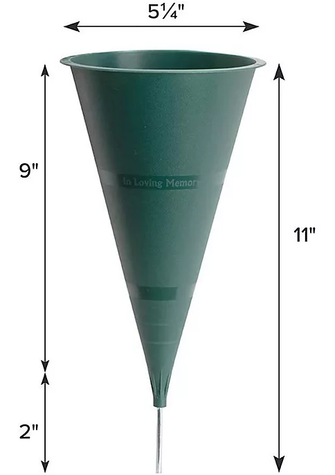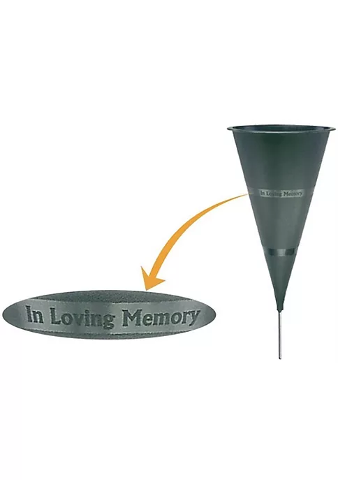 This Cemetery Vase is for displaying flowers at a loved one’s memorial. The vase is green in color and has an embossed band with “In Loving Memory” inscribed on it. It is made of durable resin with a built in metal stake for secure placement. Honor your passed loved ones with their favorite flowers in Cemetery Vase!