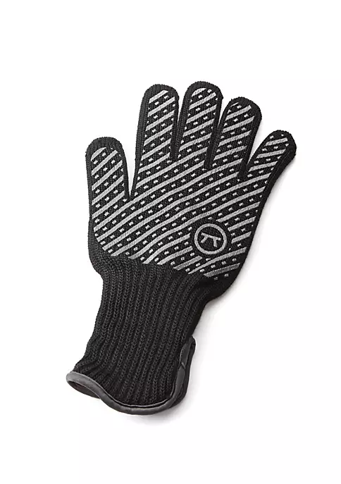 Safety and flavor go hand in hand when grill, make sure you have the perfect grilling glove. The Professional High Temp Deluxe Grill Glove has a variety of features included to enhance use. Designed with maximum dexterity in mind, this glove is made from heat and flame resistant Aramid fibers and a silky bamboo viscose lining specially designed to stay in the shell. The glove also features dual-sided silicone grip for both right and left handed use and a easy-on split cuff for wrist and forearm protection. The glove is heat resistant up to 650°F or 343°C.