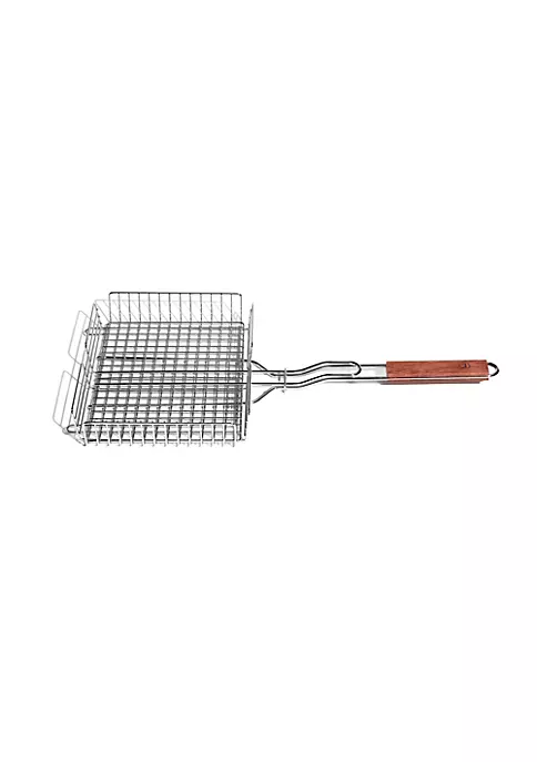 Whether you are grilling over the open campfire or on the patio fire pit…you’re set with this versatile grilling tool. Just load the grill basket with portabellas, prawns, chicken pieces, or oysters…the options are endless! The basket flips easily for the perfect sear on all sides and the long length keeps your hands away from high heat. Constructed of heavy-gauge chromed steel, the basket features a fine, solid rosewood handle, which conducts heat slowly to minimize burns. When you’re not using this must-have grill tool, it locks together for safe and easy storage.