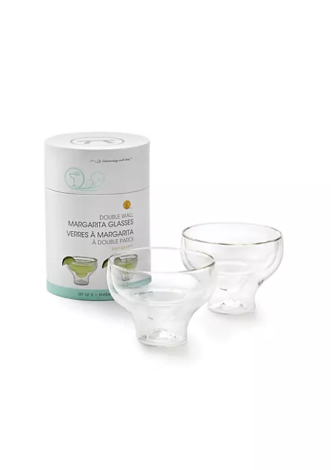 Sip in style with these attractive hand blown stemless margarita glasses by Outset. The set of 2 glasses feature a modern, lightweight design made of lead-free, hand-blown doublewalled borosilicate glass. The double wall insulated design keeps drinks at the perfect temperature and eliminates condensation and moisture from forming on the outside of the glass. Beautifully packaged in a sturdy cylindrical gift box that can also be used for storing, stacking, and protecting your glassware. This designer set makes a perfect gift for many occassions including a hostess gift for Cinco de Mayo celebrations, a housewarming or wedding gift! Elegant yet affordable, these glasses have the look and feel of fine crystal for a fraction of the cost. Simply rim the glass with lime and dip into a rimmer filled with salt or sugar and enjoy a classic margarita on the rocks, frozen margaritas, or strawberry margarita with your favorite tequila! Get creative and impress your guests with these 10 ounce glasses that can also be used as serving dishes to make a beautiful presentation for appetizers and desserts! Entertaining well done with Outset Chillware.